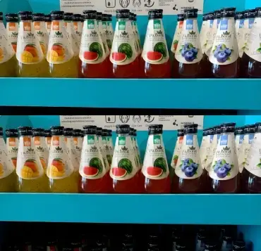 The Lychee in glass bottles is outstanding. The basil seeds give it a unique texture that makes it stand out from other drinks. My guests always ask about it.