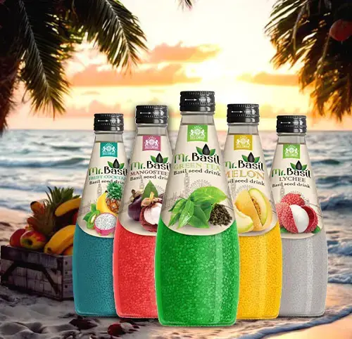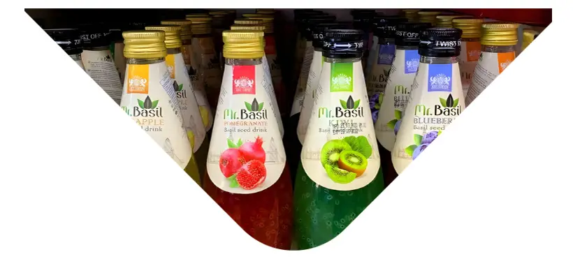 Fast-moving basil seed drinks trending in supermarkets and convenience chains.